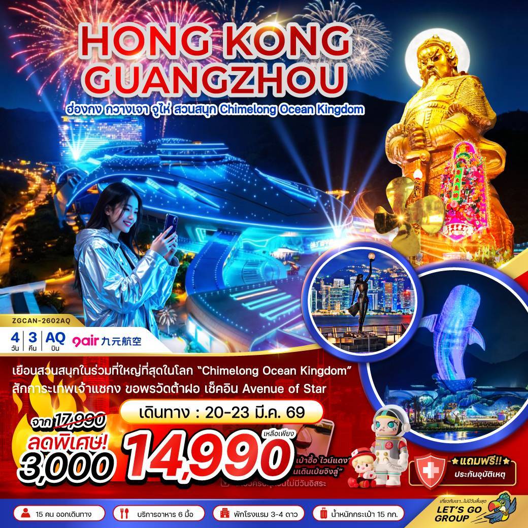 ฮ่องกง กวางเจา จู่ไห่ สวนสนุก CHIMELONG OCEAN KINGDOM 4วัน3คืน
