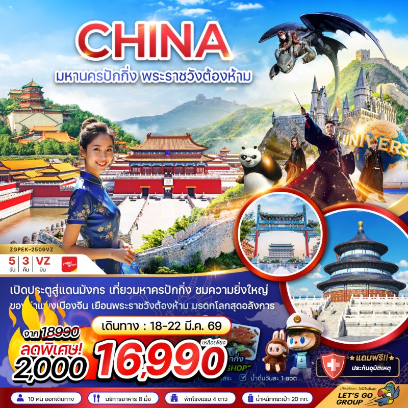 • จีน มหานครปักกิ่ง พระราชวังต้องห้าม สวนสนุกยูนิเวอร์แซล สตูดิโอ 5 วัน 3 คืน