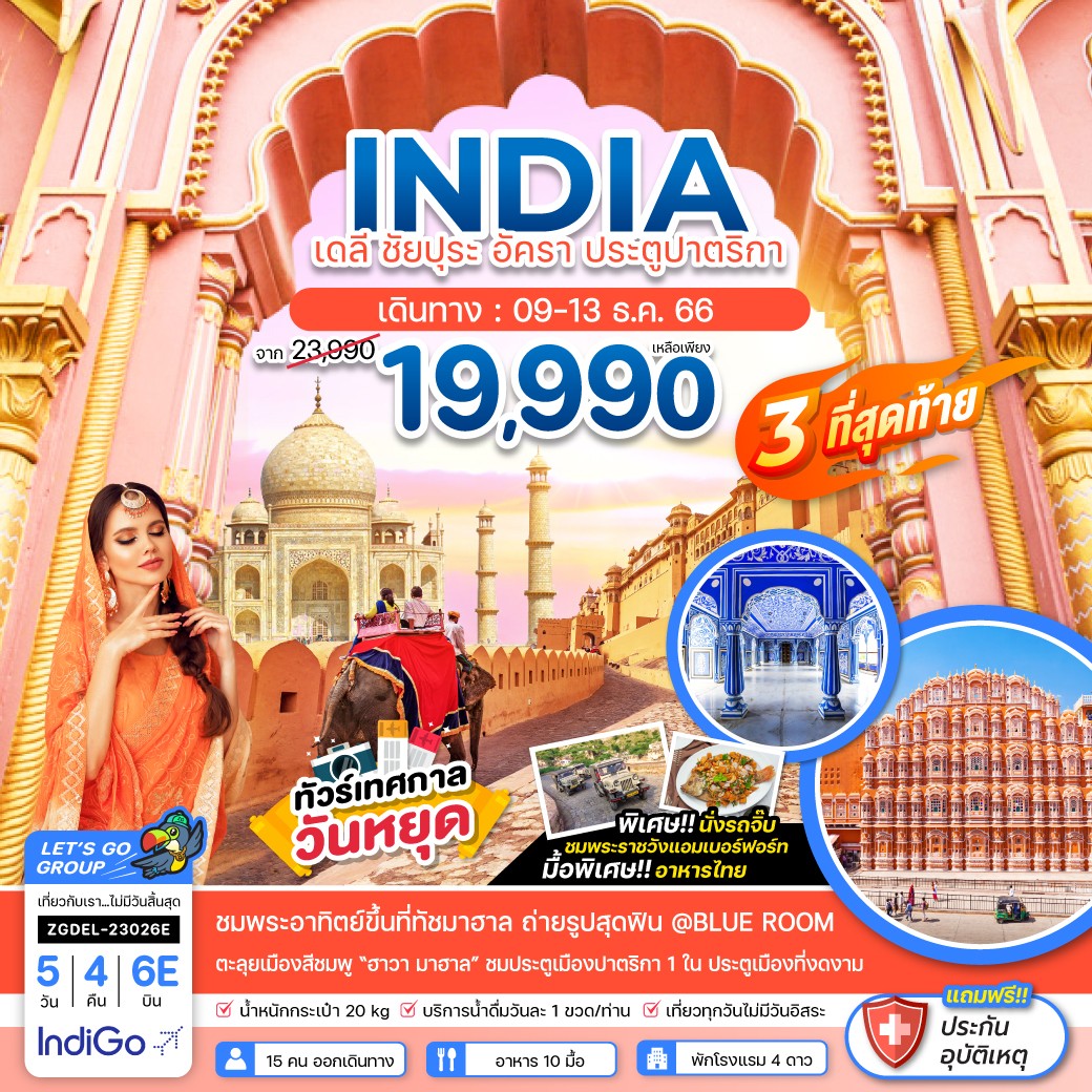 อินเดีย เดลี ชัยปุระ อัครา ประตูปาตริกา 5วัน 4คืน