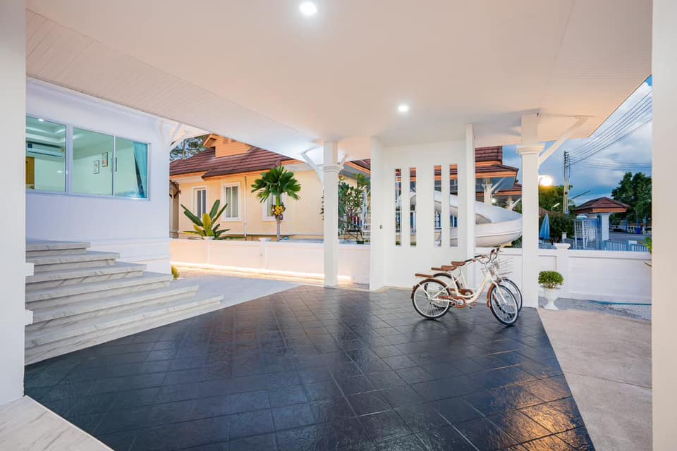 ที่จอดรถ : จอดรถหน้าบ้านได้ 2 คัน ข้างบ้านได้ 3 คัน