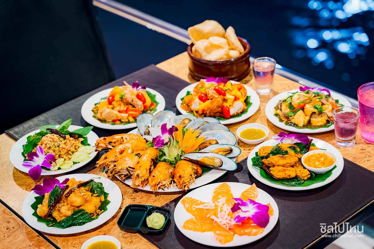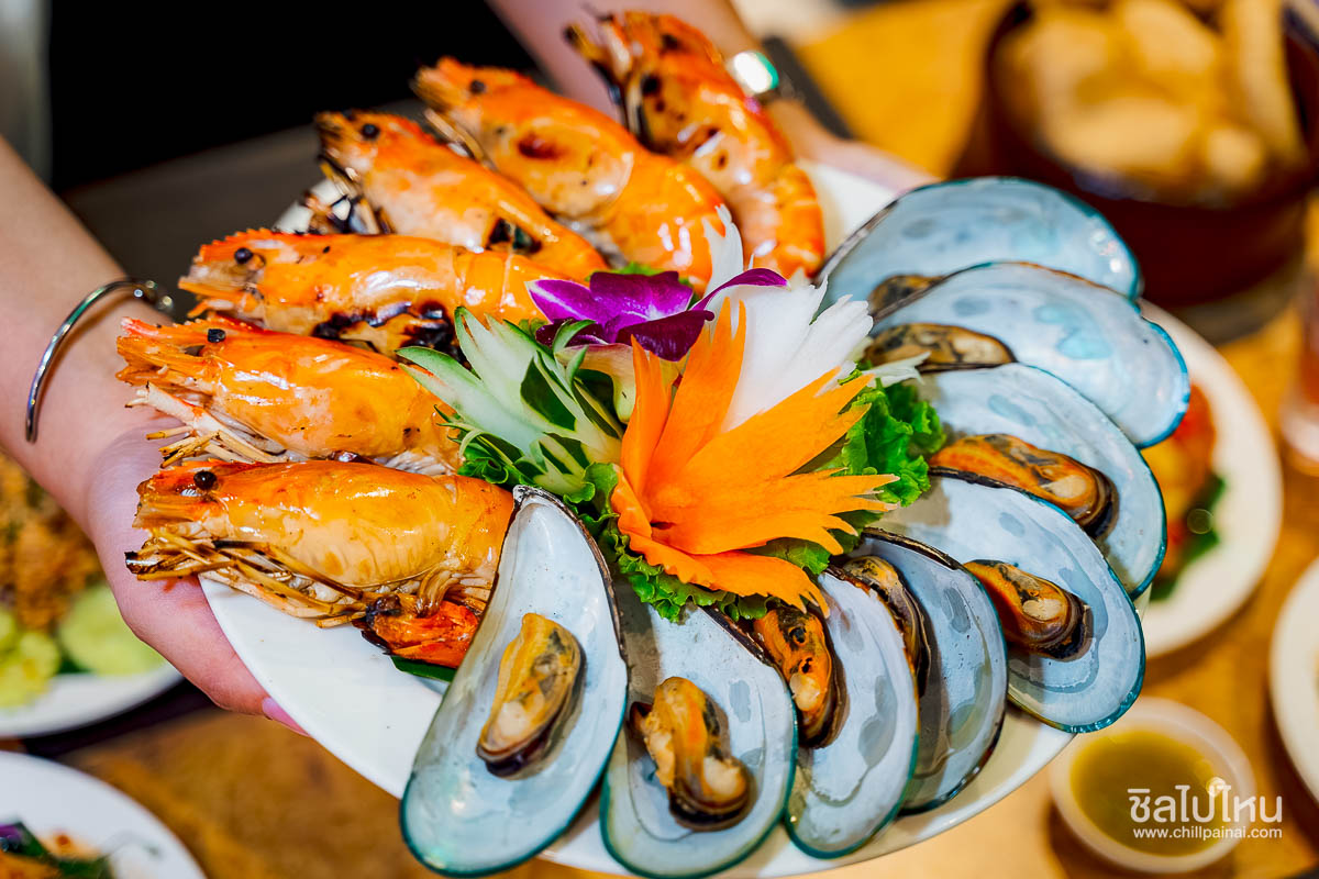 - บุฟเฟ่ต์อาหารนานาชาติและอาหารทะเล กุ้งเผา หอยเผา แซลม่อน