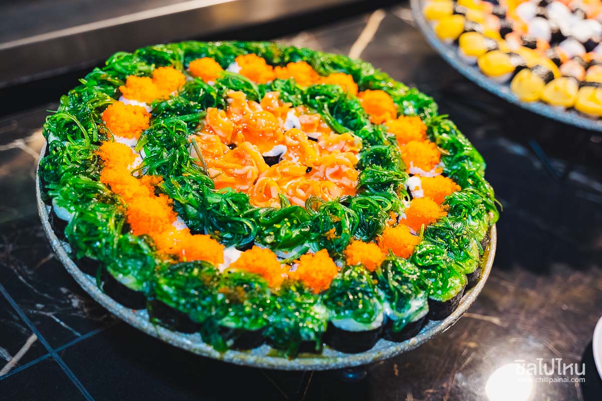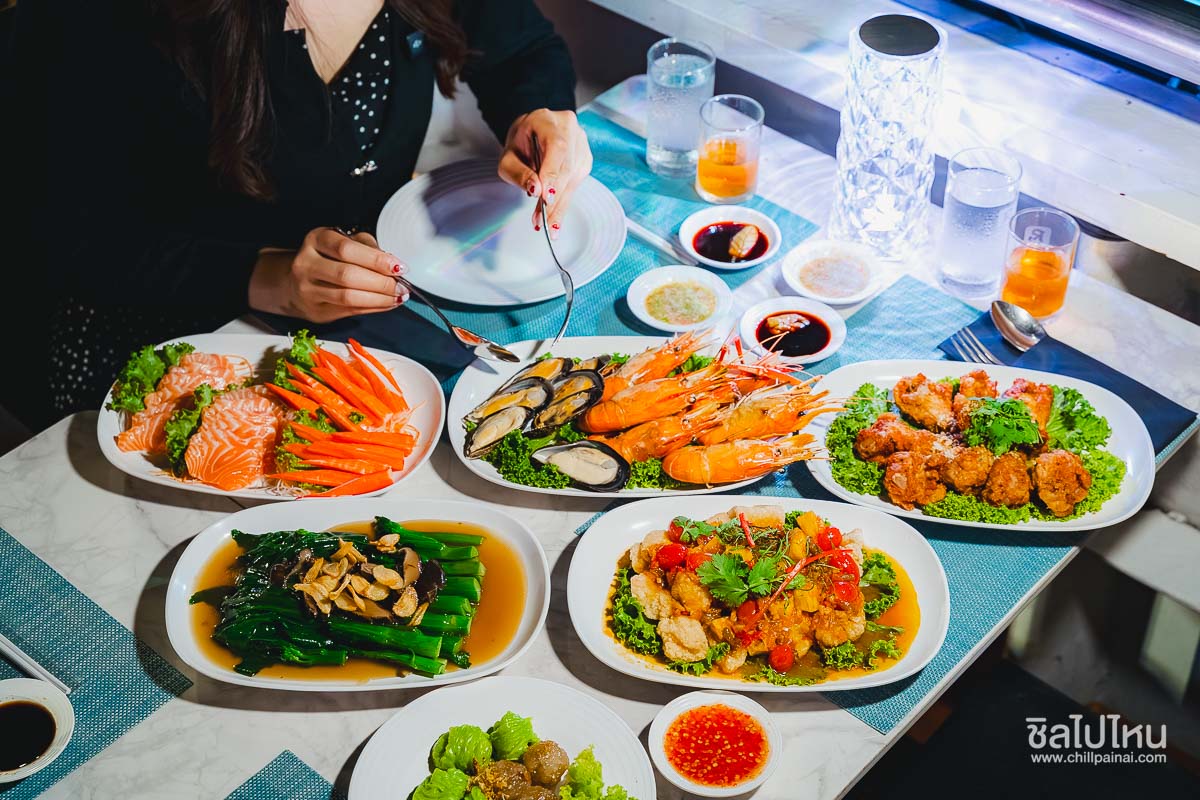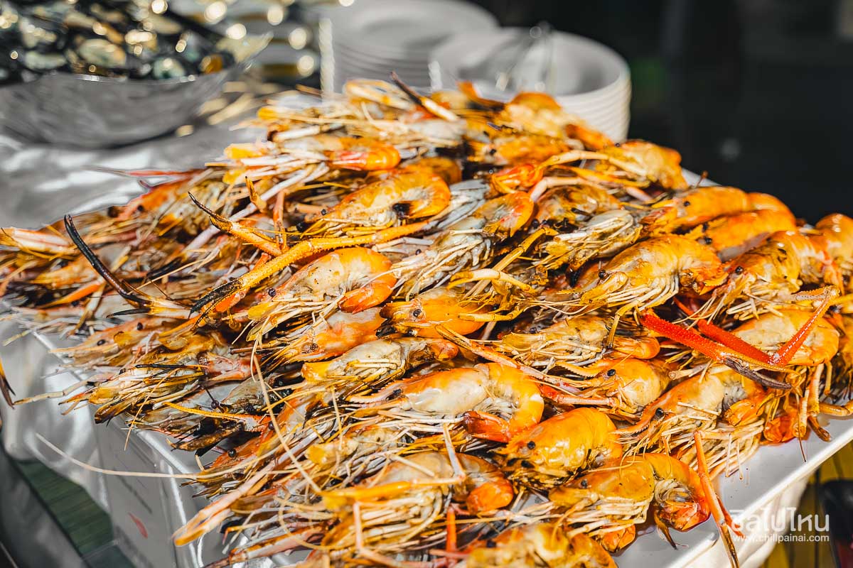 2. บุฟเฟ่ต์อาหารนานาชาติและอาหารทะเล แซลม่อน กุ้งเผา