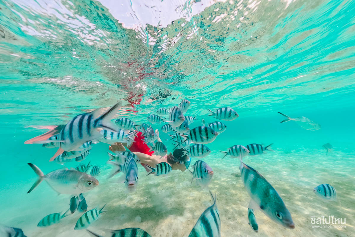 - อยู่บนเกาะ เล่นน้ำ ดำน้ำ หน้าหาด