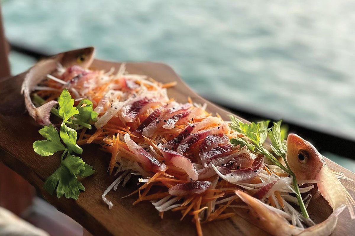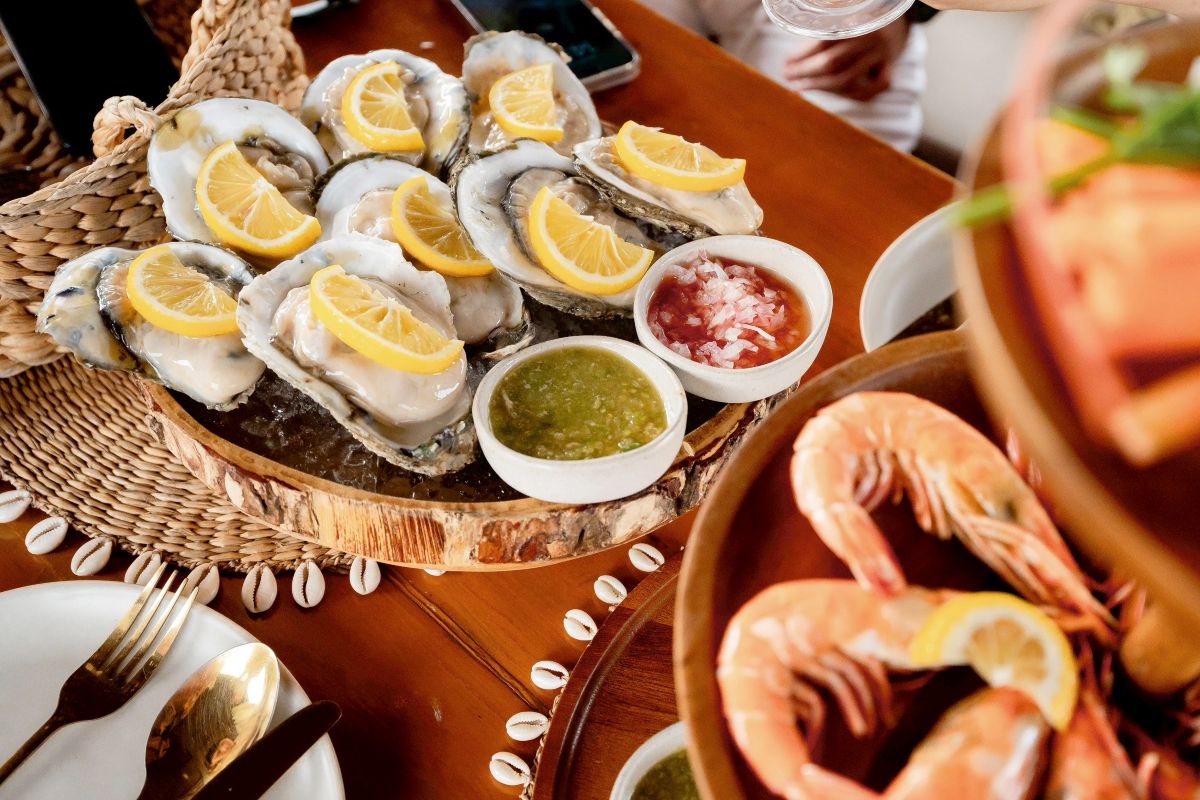 - ชุด Afternoon set (Seafood Platter / Oysters / Lobster / Cold Cuts Set / ข้าวผัดไก่ / ผลไม้ / และปลา Sashimi ที่ตกได้ในแต่ละวัน)