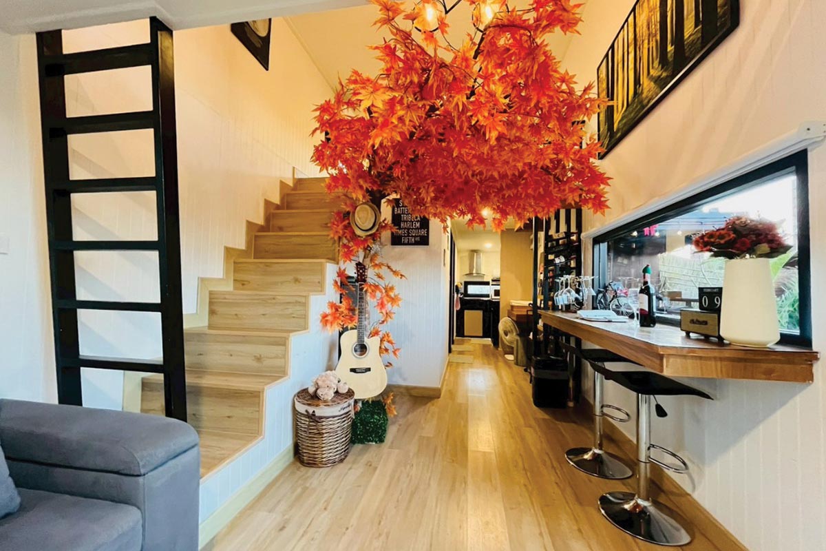 - ห้องนอนจะแบ่งเป็น 2 ฝั่ง ไม่มีอะไรกั้น ขึ้นบันไดคนละฝั่ง จะเป็นแบบ สไตล์ Tiny house
