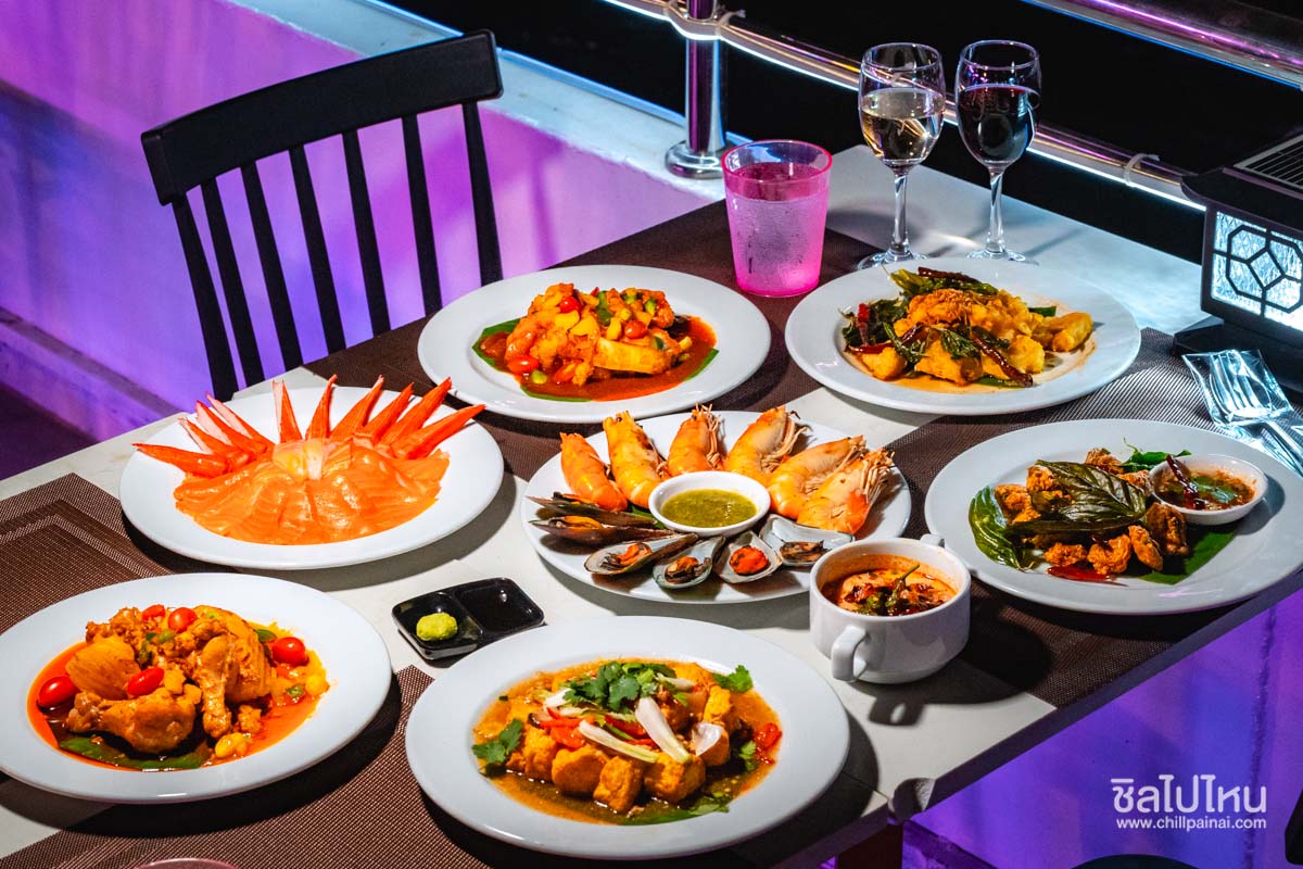 - บุฟเฟ่ต์อาหารนานาชาติ กุ้งเผา หอยเผา แซลมอนซาซิมิ ซูชิ