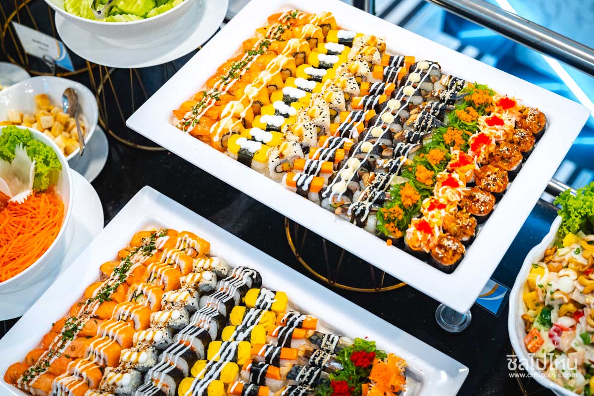 - บุฟเฟ่ต์อาหารนานาชาติและอาหารทะเล กุ้ง, หอยออนไอซ์ + แซลม่อน