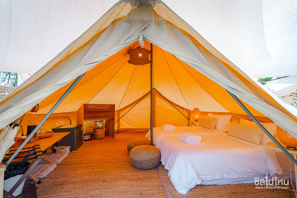 เต็นท์หรูติดแอร์ บรรยากาศเงียบสงบ มีร้านอาหารในที่พัก