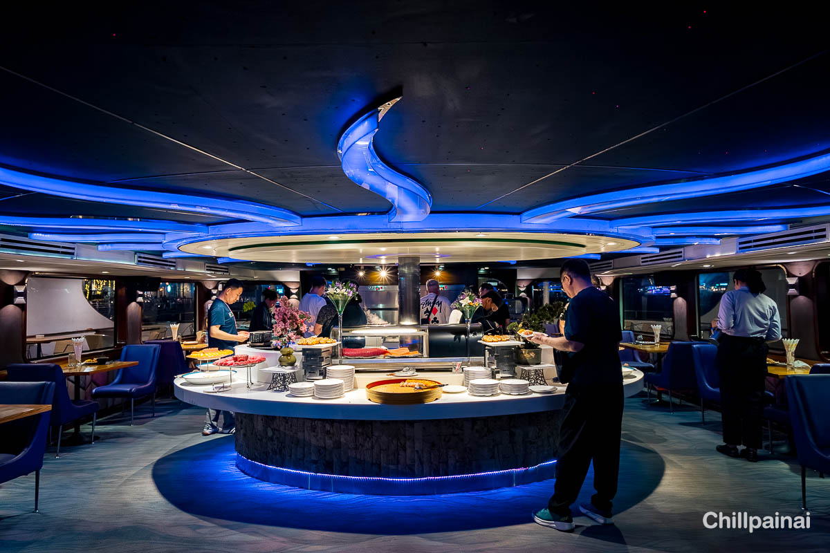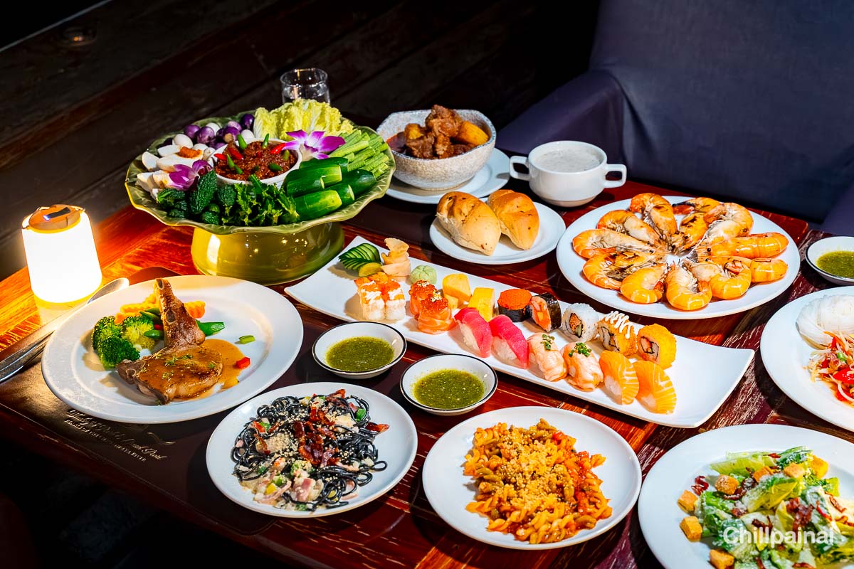 Enjoy a 2-hour international buffet with sushi and grilled river prawns, with food continuously refilled throughout the night.
