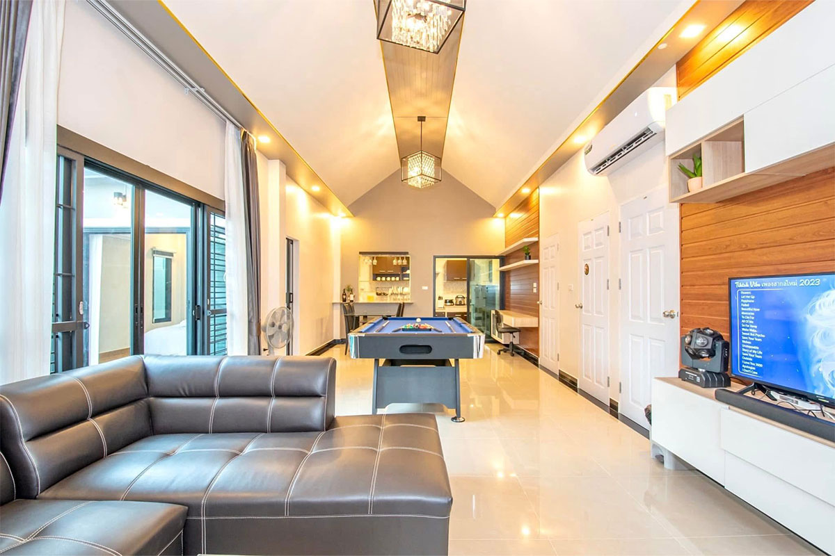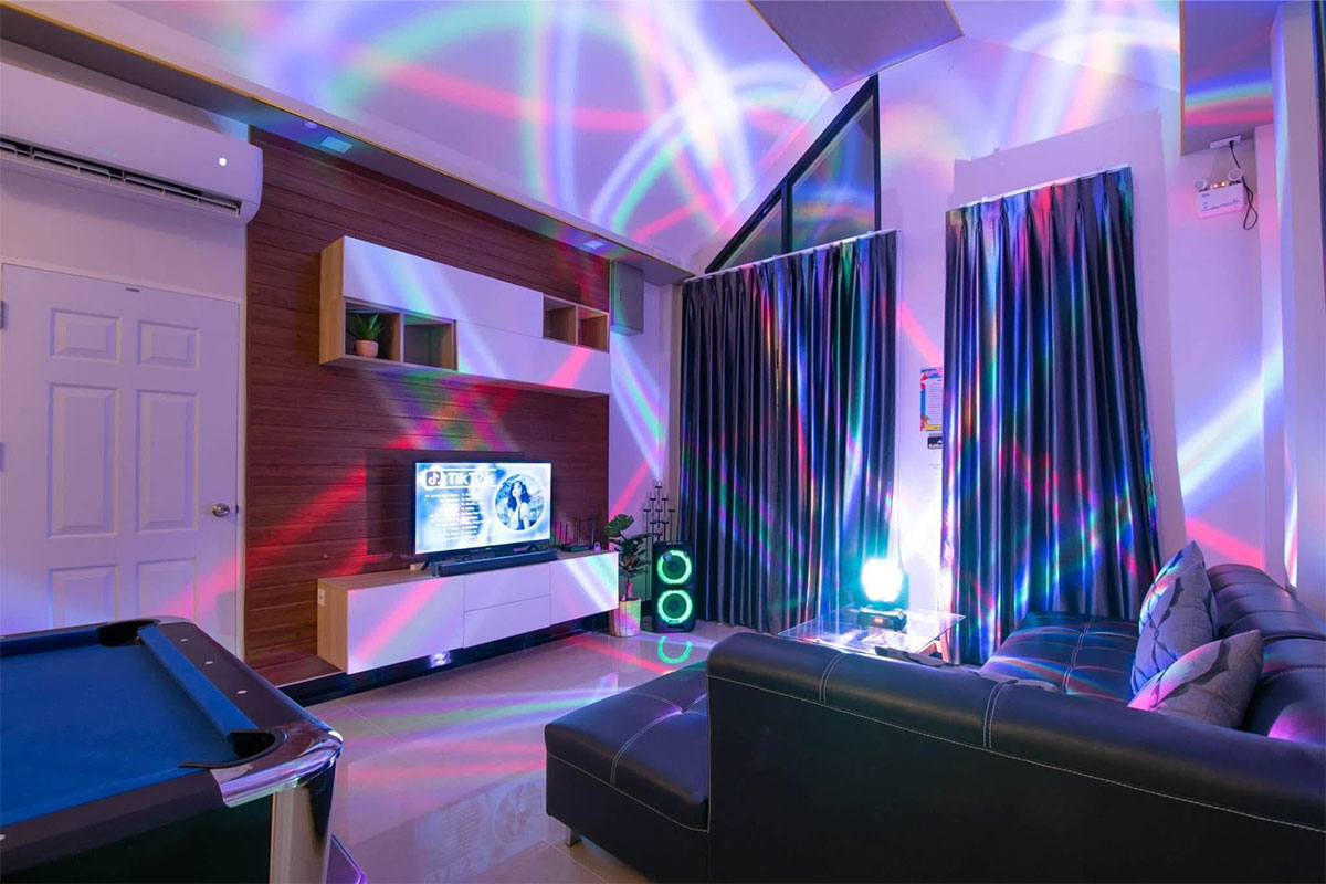 Private pool villa in Pattaya - Apple Club Pool Villa, featuring a private swimming pool, karaoke, snooker table, and slide. Perfect for parties or relaxing with family and friends in a private atmosphere.