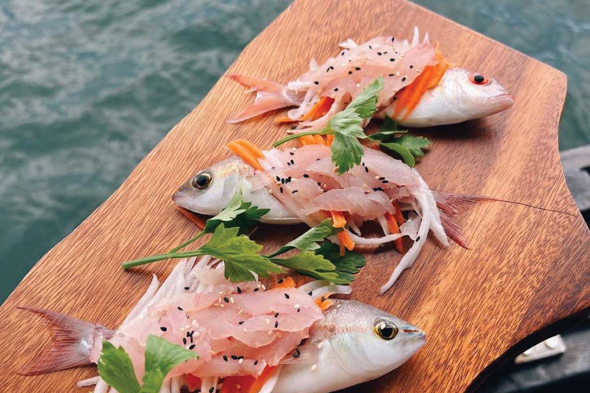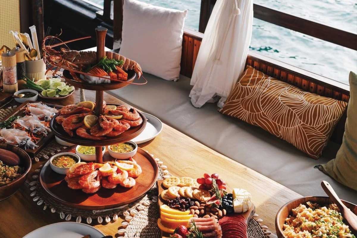 - ชุด Afternoon set (Seafood Platter / Oysters / Lobster / ข้าวผัดไก่ / ผลไม้ / และปลา Sashimi ที่ตกได้ในแต่ละวัน)