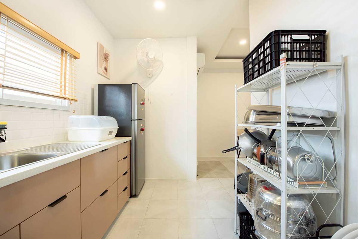 - หม้อ ,กระทะ ,จานชาม ,ช้อน ,แก้วน้ำ ,เขียง ,มีด ,หม้อหุงข้าว ,ครก ,สาก ,เครื่องปั่น ,ไมโครเวฟ