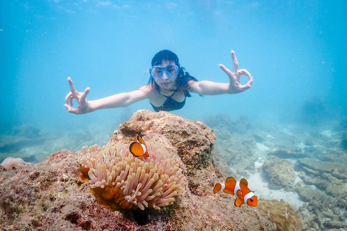 12.30 น. ดำน้ำลึก ถ่ายรูปกับปลานีโม่ (ลึก 2-3 เมตร) และขึ้นชายหาดไปถ่ายรูปสวย ๆ