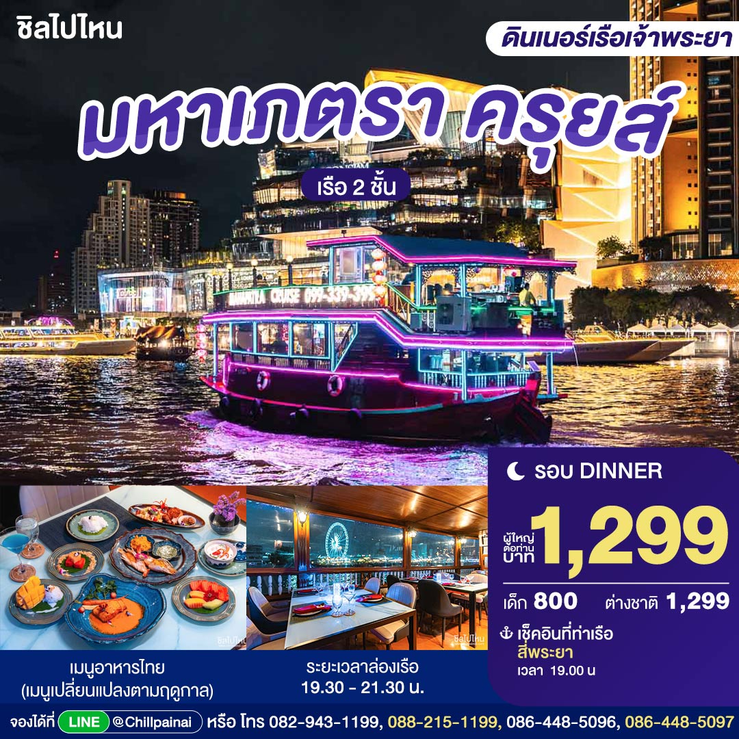ดินเนอร์บนเรือหรูล่องแม่น้ำเจ้าพระยา มหาเภตรา ครุยส์ , สำหรับผู้ใหญ่ 1 ท่าน